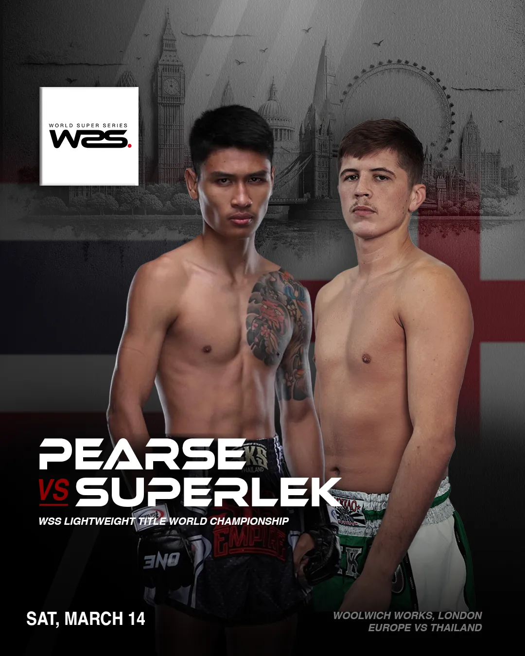 Pearse takes on Thailand’s Superlek Jitmuangnon for the inaugural WSS Title — March 14, live from London 📍